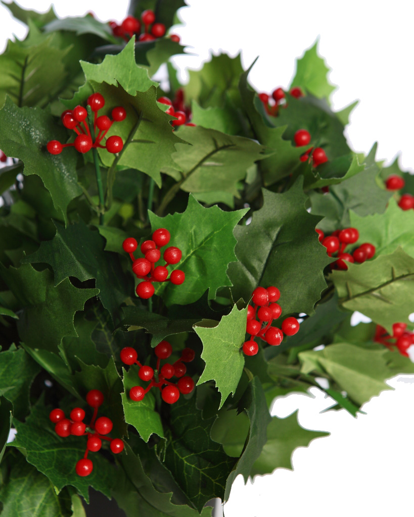 Acebo artificial con maceta de 35 x 37 centímetros. Elaborado en Tela 100% poliéster, plástico de polietileno y, alambre de acero. No necesita mantenimiento. Ideal para renovar la decoración de tus espacios y jardínes.