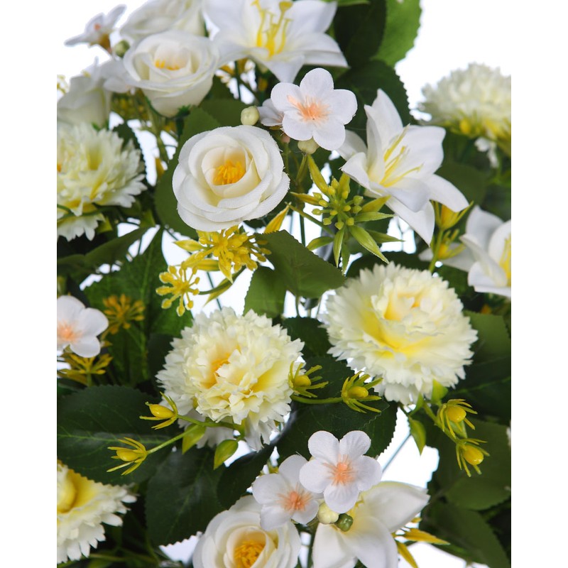 Aporta vida y color a tus espacios con la exclusiva RAMO DE UNA CARA CLAVEL Y LILY ARITIFICIAL 50CM. Su diseño ha sido cuidadosamente elaborado para imitar a la perfección las formas naturales, ofreciendo una experiencia visual asombrosa que sorprenderá a todos tus invitados o clientes.